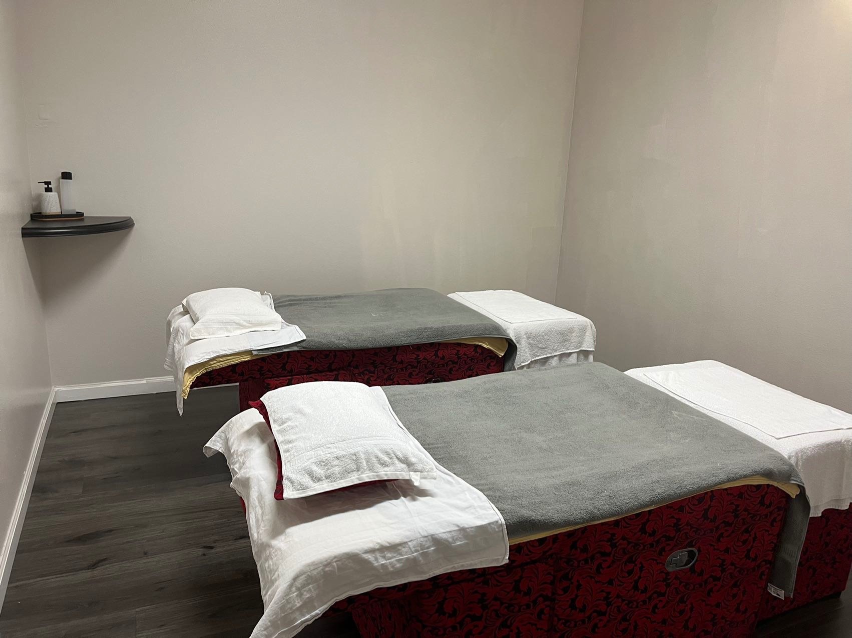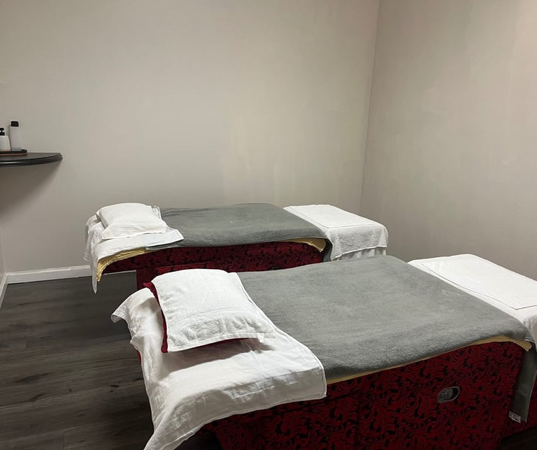A relaxing massage experience for two, enjoyed side-by-side in the same room.